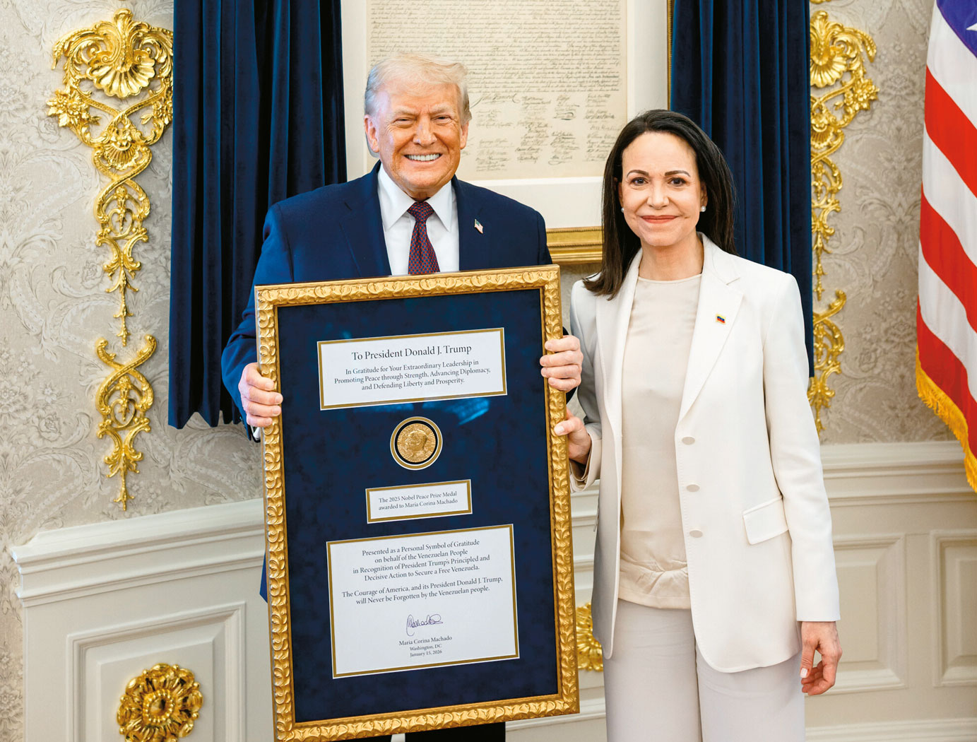 Machado upiera się, że Trump zasłużył na nagrodę, a rodaków wątpiących w jej gest zapewniała, że amerykański prezydent doprowadzi do demokratycznej przemiany w Wenezueli. Jej decyzja jest osobliwa, tym bardziej że po interwencji zbrojnej USA w Wenezueli 3 stycznia i porwaniu przez siły specjalne dyktatora Nicolasa Maduro Trump odsunął Machado i opozycję od wpływu na bieg zdarzeń w ich kraju. Obraził noblistkę twierdzeniem, że nie ma ona dość szacunku ani poparcia, by objąć władzę. Postawił za to na współpracę ze starym reżimem – tyle że bez Maduro, który w ukradzionych wyborach 2024 r. dostał poparcie dwa razy mniejsze niż kandydat wspierany przez Machado.