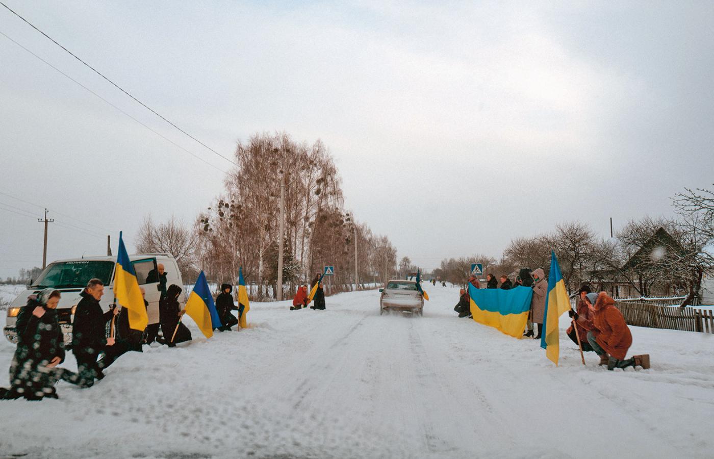 W każdej mijanej wsi ludzie żegnają poległego.Taras Ibragimov W każdej mijanej wsi ludzie żegnają poległego.