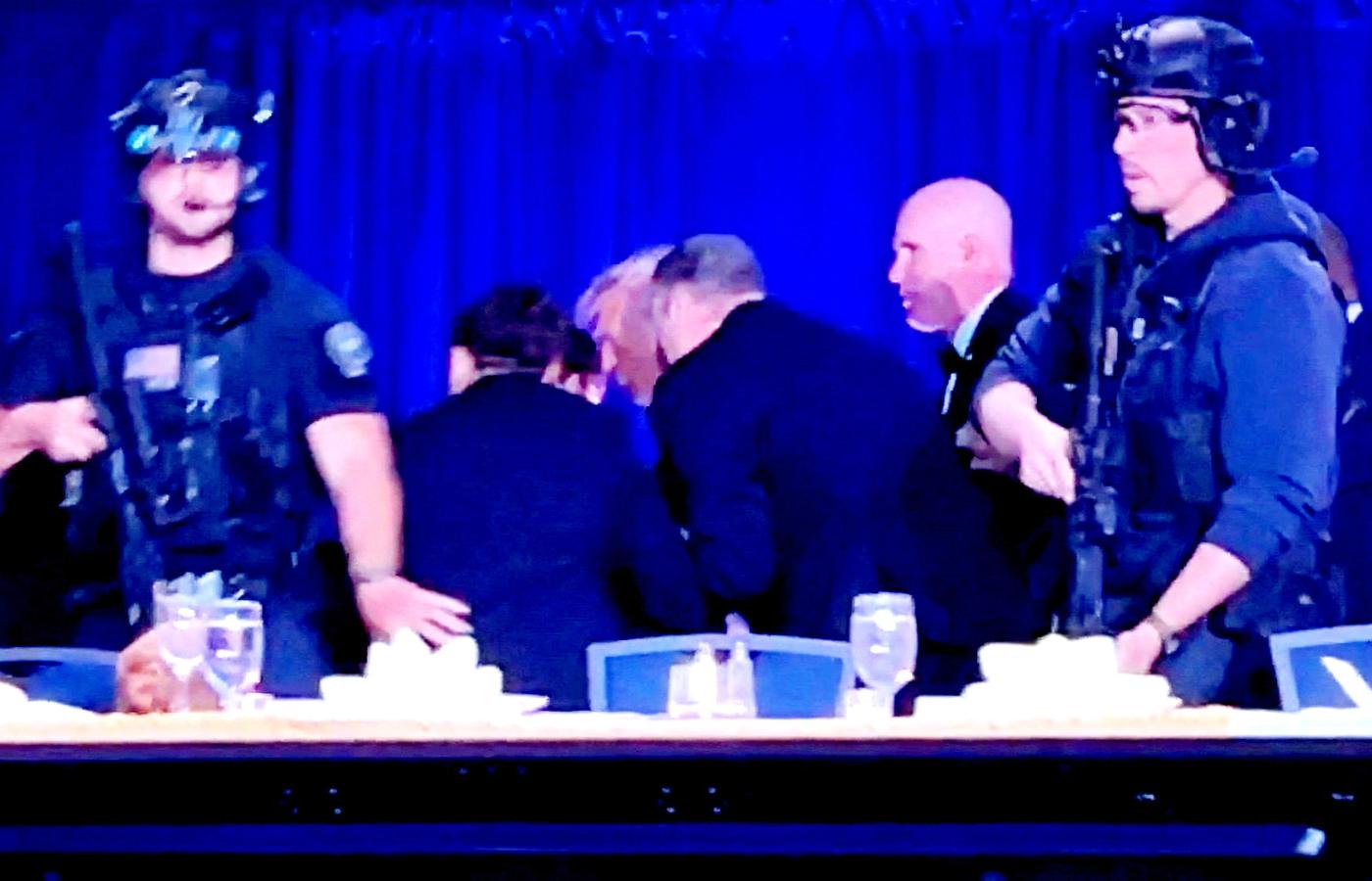 Ochroniarze z Secret Service ewakuowali Trumpa, który siedział przy głównym stole na podwyższeniu, skąd miał przemawiać. Ewakuowani zostali także wiceprezydent J.D. Vance i pierwsza dama Melania Trump.