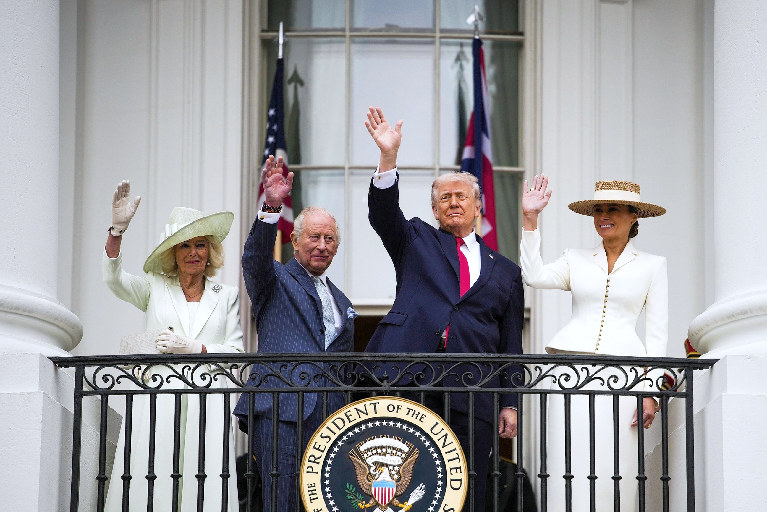 Króla Karola i królową Kamilę powitały w Ogrodzie Różanym prezydenckiej rezydencji fanfary, szeregi wojsk we współczesnych mundurach i oddział maszerujących żołnierzy w XVIII-wiecznych uniformach. Brytyjska para i Donald Trump z małżonką Melanią przyglądali się paradzie z balkonu Białego Domu.