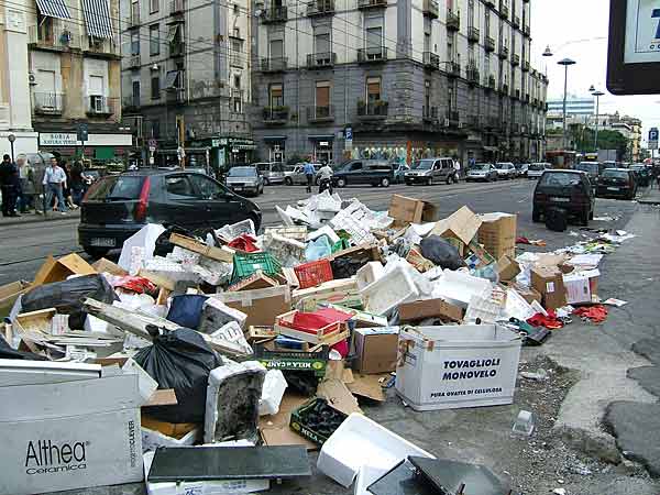 Od kilkunastu lat stan odpadów w Neapolu gnębi cały region Kampanii. Raz, dwa razy do roku śmieci wysypują się na ulice, ponieważ wysypiska są przepełnione. Ale to, co wydarzyło się na początku tego roku, zaszokowało nawet najbardziej otrzaskanych z tym stanem rzeczy. Śmieci znów zaczęły zalegać, ale tym razem na długo, aż urosły do rozmiarów prawdziwych gór. Powodów jest kilka. Oficjalny: w okolicy metropolii zapełniły się wszystkie wysypiska, a budowę nowych paraliżują mieszkańcy wsi w obawie o swoje zdrowie. Prasowy: nieudolność i korupcja lokalnych polityków. No i powód nieoficjalny, o którym mówi się półgłosem: i polityka, i wywóz śmieci są domeną camorry, która na takich kryzysach zarabia krocie.
