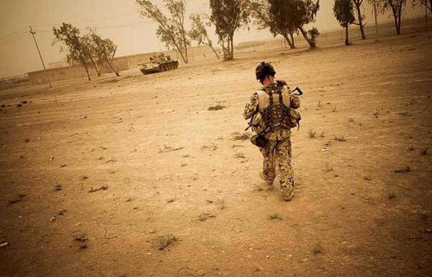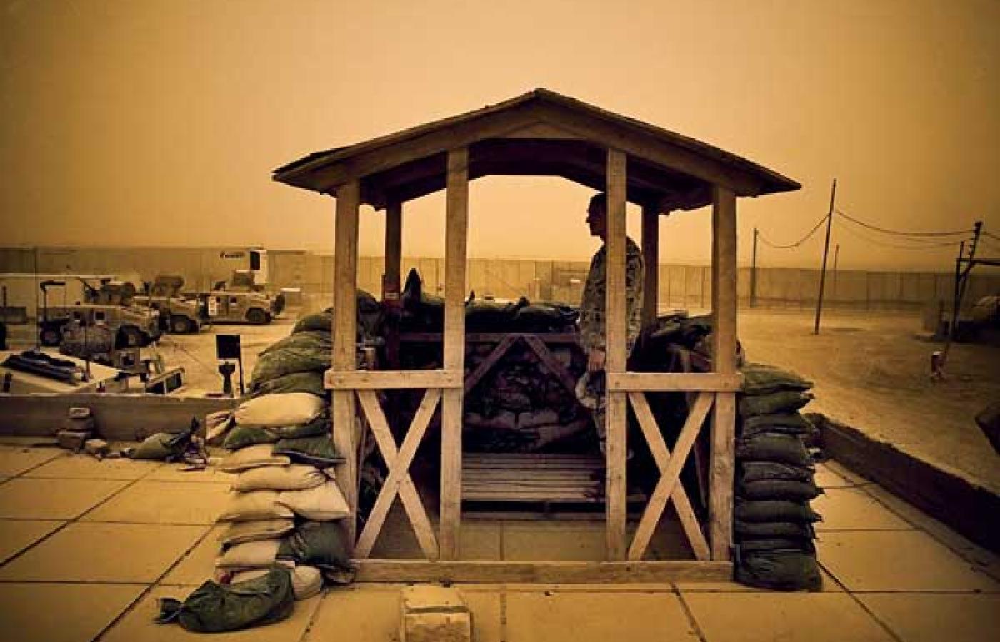 Kilka metrów dalej topnieje spory oddział piechoty. Co 22 minuty koło ich prowizorycznego biwaku lądują dwa śmigłowce black hawk. Grupka żołnierzy ustawia się w szeregu i po chwili znikają w helikopterach, które wyglądają jak gigantyczne ważki. Kiedy wznoszą się na tle wschodzącego słońca, ktoś rzuca: Zupełnie jak w „Czasie Apokalipsy”.