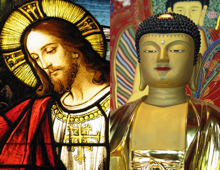 Jest więc między oboma nauczycielami zasadnicza różnica: Budda nie uważał się za Boga ani nie odwoływał do idei Boga, bo w jego tradycji filozoficznej i religijnej ta idea nie istniała w rozumieniu zachodnim, monoteistycznym. Dlatego pierwotny buddyzm nazywamy raczej filozofią człowieka i rzeczywistości, a nie religią. Buddyzm rozwija się od ponad dwu tysięcy lat w wielu wydaniach, azjatyckich i zachodnich, nie miał nigdy centrali ani inkwizycji stojącej na straży dogmatów, za to miał od zarania praktyczne, racjonalne nastawienie, niechętne spekulacjom metafizycznym. Nie zabraniał jednak szerokim rzeszom czcić Buddy na zasadzie religijnej. Ludzie modlą się w pagodach do Buddy jak chrześcijanie w kościołach do Boga. Mnisi buddyjscy bez większych trudności są w stanie porozumieć się z chrześcijańskimi w sprawach życia w wyrzeczeniu i kontemplacji.