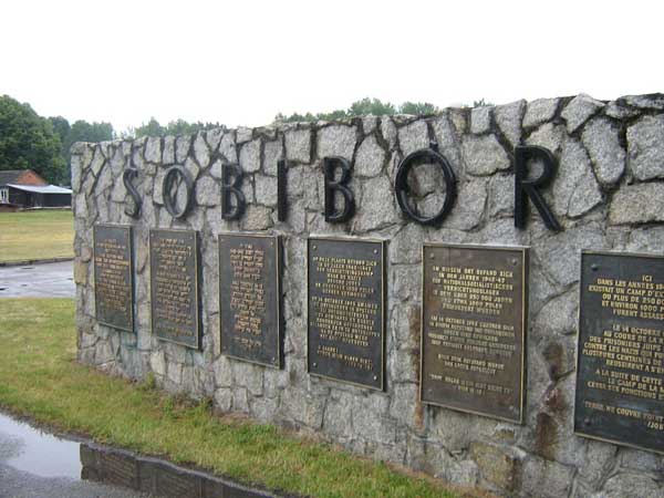 W 1942 roku przed rampą kolejową w Sobiborze stała tablica „SS-Sonderkommando". Za nią wznosiły się strażnicze wieżyczki i baraki. Z rampy nie można było dostrzec komór gazowych w głębi obozu.