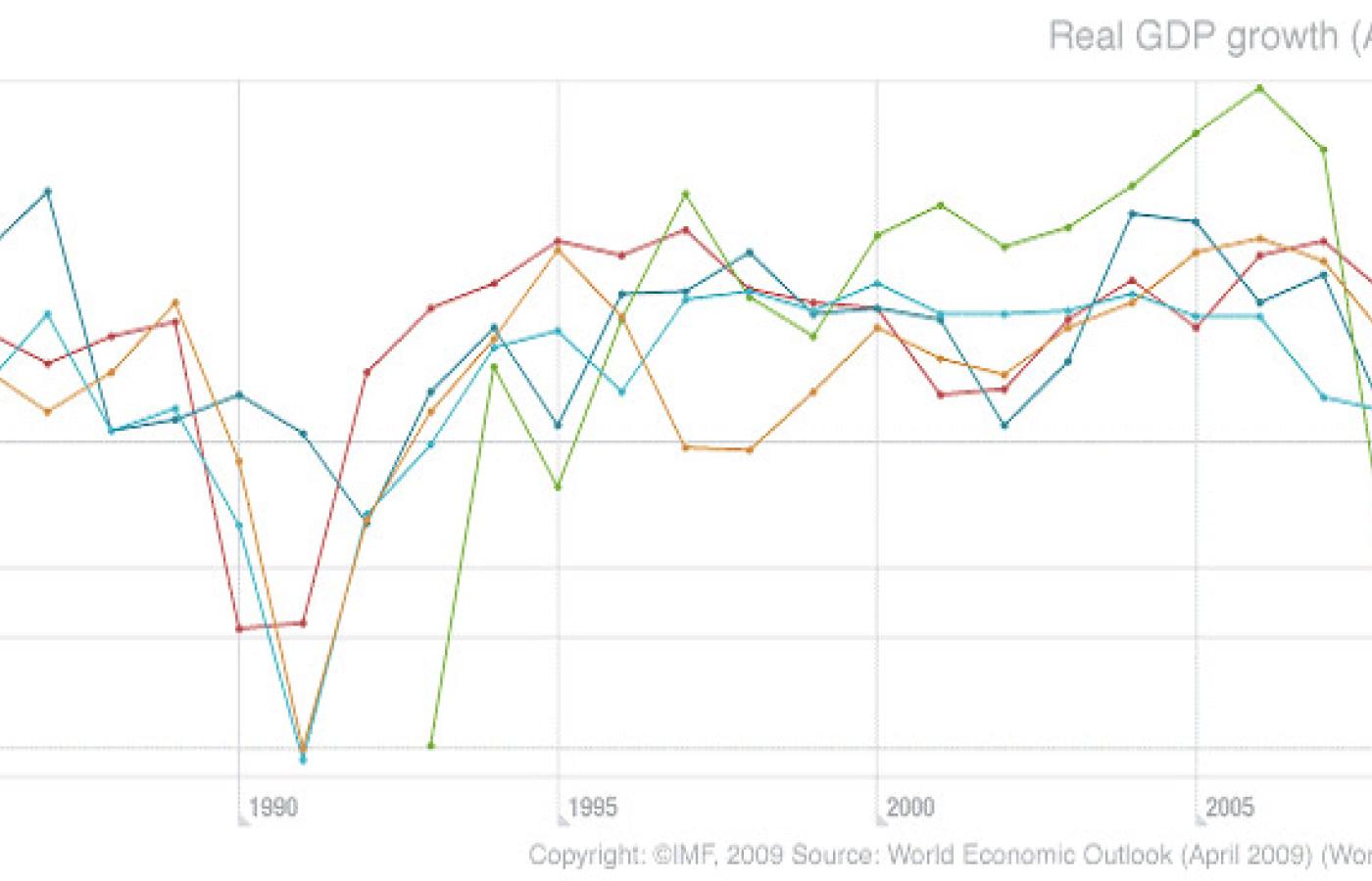 Po drugie warto zerknąć na prognozę MFW na lata 2010-11, a ściślej na krzywą, jaką ma podążać wzrost PKB tych samych gospodarek. Jak widać z wykresu, w 2010 r. Polska (czerwona linia) dystansuje całą resztę, a od 2011 idzie łeb w łeb z Islandią (szafirowa linia), jednym krajem Europy Zachodniej, który wpadł w poważne tarapaty, ale ma się z nich szybko wydobyć. Węgry, Czechy i Łotwa też się pozbierają, ale wyjdą z kryzysu ze stratą 1-1,5 proc. tempa wzrostu w stosunku do nas. Wartość tak odległych prognoz jest oczywiście ograniczona, ale trend jest wymowny. Te 1-1,5 proc. to zysk gospodarczy Polski z kryzysu.