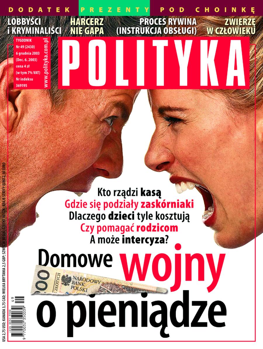 Pieniądze zaczynają pełnić w polskiej rodzinie nową, drażliwą rolę. Zdarza się, że wielkomiejskie małżeństwa traktują swój związek jak biznesową spółkę. W wielkim stylu wraca intercyza. Na popularności zyskują umowy prawne o dożywotnim utrzymywaniu rodziców.